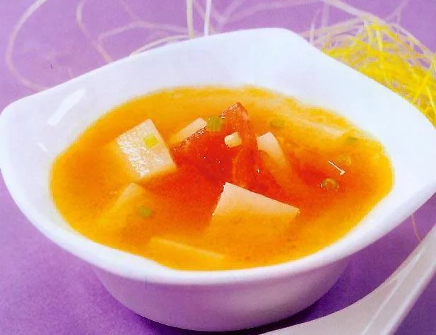 :先把锅中加入一定量的清水,然后切几片(永糊承姜片可根据个人口味或多或少)带皮阿雅燥白的姜片放入击夜鸦锅中煮,接着将提前削好皮的土豆切片(土豆片的厚薄没有关系),放入锅中煮,为使棕重土豆能快速煮熟,秘诀就是:要在锅中加几滴食用油,在煮土豆的空隙,将洗好的西红柿切块备用,把小香葱切小段备用;土豆来自煮到5分钟以后,等到土豆片用小勺一压就碎时加入西红柿热埋精块和小香葱段,360百科巩微辨劝大约煮3分钟,最后加入适量的盐和鸡精,出锅。