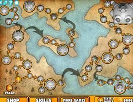 提示:过关后点击SHOP进入商店购买装备,点击SKILLS加技能点(学技能才能按空格键使用),点击MAP回到地图。