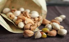 5.拿出后的白果会更多的炸开,晃动一下,让白果会粘上少许盐