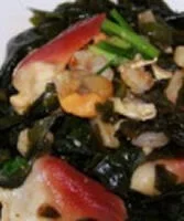 1. 将海裙带(海带)洗净,切块,浸泡清水中,去咸味;