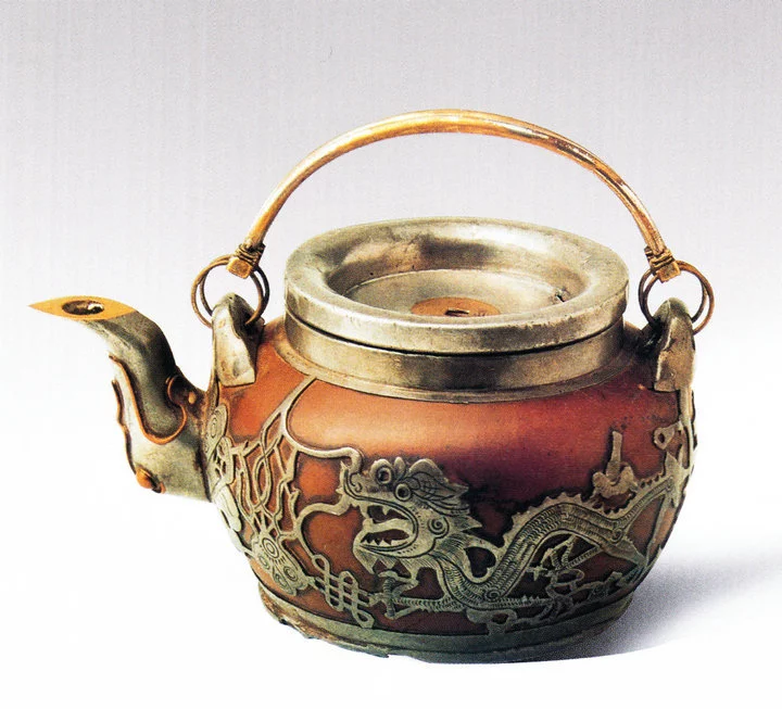 镶铜锡龙纹圆壶属于清代文物,收藏于香港茶具文物馆。