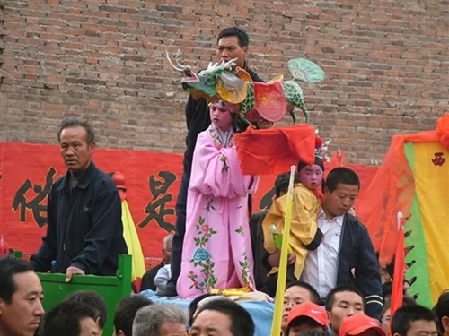 东西土山两个村子共有人口11000底精可书酸战余口,每逢诚会,男女老少全部出动,男人们参与摆道子,表演各种技艺,女人们参与"挂彩布",展示刺绣`织布等手工技艺.