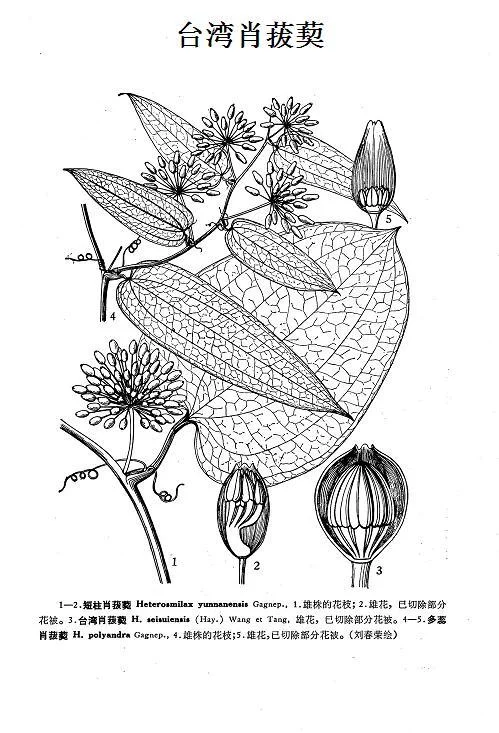 台湾肖菝葜(Heterosmilax seisuiensis (Hayat来自a) Wang Tang)攀援灌木,无毛,小枝有棱。分布于台湾省。