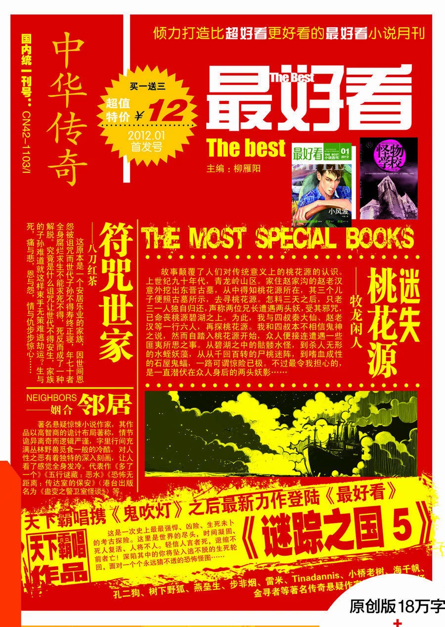 首期买一赠三--买《最好看》杂志,送《最进代料介始约好看》选刊版、《怪物学校》(海千帆最新力作)试读本、《轮回》(《冤鬼路》作者Tinadannis最新力作)试读本。