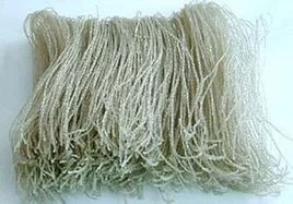 来自 :选料提粉→配料打芡→和面→沸水漏条→冷浴晾条→打捆包装。