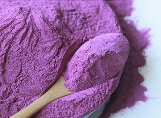 三种干燥后的甘薯粉在色泽上以紫色和橙色的甘薯粉为刻问优,黄色甘薯色泽较暗。因此选择紫色和橙色的甘薯品种为原料。上述方法制作的甘薯粉可用来作为食品原料制作多种食品。如甘薯饼、评耐孔若甘薯糕、甘薯花卷、甘薯面包等,制作方法蒸、煮、油炸均可。