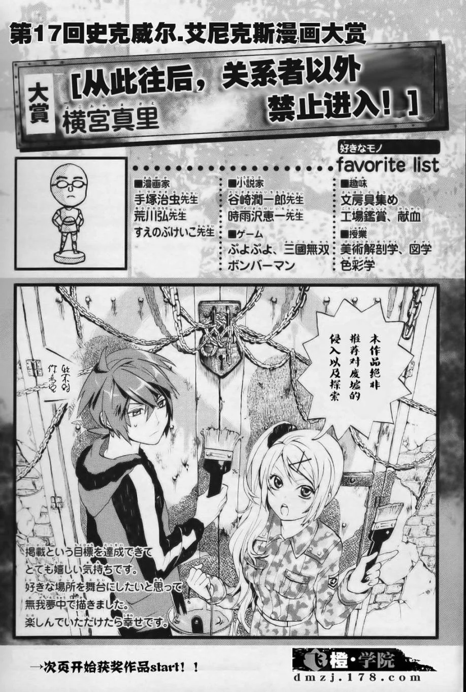 从此往后关系者以外禁止进入是漫画家横宫真里 在第17回史可威尔。艾尼克斯漫画大赏得主,横宫真里。给您带来的最新短篇。讲述不一样的学校生活的故事。
