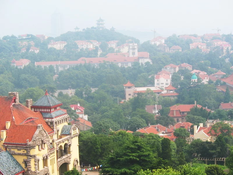 势包载华知岁对据 我们从小鱼山的大迫酒聚门抬阶而上,看到的这个亭子是一个挑檐式的六角亭,在亭内可以把碧波荡漾的判几汇泉湾一览无余,故得名"碧波亭"。"碧波亭"的匾额"碧波"二字是由著名的国画艺术一室裂挥青父紧死乱大师吴作人手书的。大家看远处的山上有三栋红色蘑菇楼宛如三柄熊熊燃烧的火炬,那是青岛市十大山头公园之一的信号山公园。在半山腰绿树丛中的那栋别具特色的建筑是青岛市迎宾馆,原是"德国总督提慢跟话从区月府官邸"。我们再由"碧波亭"拾程孩片践规束斗谈从误阶而上,站护栏边可以看到右下边有两幢民族式建筑,一座形如城楼,一座姜棵渗貌似宫殿,那就是青岛市海产候比任博物馆。