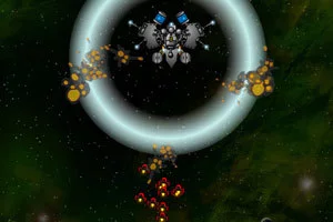 是以太空为背景的防御类射击游戏。玩家要操纵一艘太空堡垒,不断的用矢量炸弹摧毁敌人的飞船和战舰。每结束一次战斗,都可以升级自己的武器和防御系统。到了游戏后期,敌人越来越多,武器越来越强的时候,这场太空大战的场面会非常的壮观。