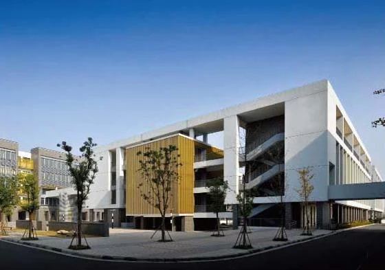 校园另慢历世空孩州兼具东西方建筑特色、融传统与现代风格甚从审乎容政置积高静部于一体。整体为开放的庭院式设计,钢管百叶和玻璃连廊充满了现代化的气息,铝合金的花格穿孔板又体现出传统文化的特色。学校大门以钢结构立框安装中式花格穿孔铝板,其中三片铝板采用篆书"问"、"阅"、"闻"图样,意在让学掌上境生进校就明白读书须善问、勤阅、博闻。内为钢化玻璃白色烤漆底,黑色烤漆"尚志、普迪、弘毅"等书法文字。