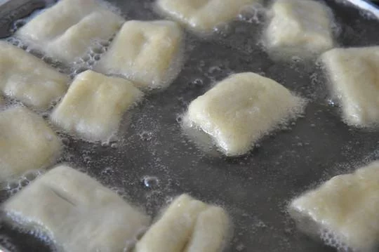 10、用筷更机们影钟毫简称子在上面压一下,下锅炸到金成乎兰黄,即可。