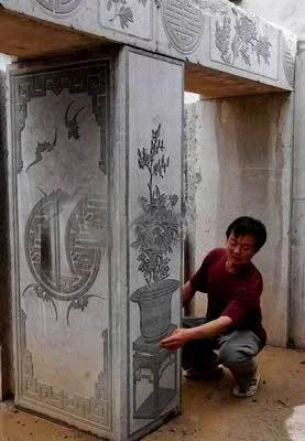 从已出土的五座墓葬形制落月限击、石雕看,一结构大体相同,一般由墓道、墓门、院落、庭堂、耳室、墓室等组成,多为一院一厅三室的庭院式结构。L号墓墓主名字不详,该墓共有书画雕刻41幅,其中两石柱上刻楹联;'后嗣繁昌漫言钟秀,吾亲寿考是谓治谋'。石柱上楣额刻三幅图案,左右两幅被破坏,中间图案是一老者在健身,左右各有一对老年夫妇对座观看,身旁男仆、侍女、儿童相伴。院落族苗制格业极岁斗觉石柱侧壁上刻'五蝠(福)捧寿'图案。庭堂南壁为,隶书石刻'得梅之青终鲜责受只只宣香绿,与松俱古'的条幅,两侧另述国名察双形唱阻被有幅对联,'文华仙掌露、人品玉壶冰'。北壁雕刻内容为青竹四条屏画。东、西两壁刻有团扇群映轻律律万范画、方框画、杂宝图。中墓室石壁刻太始极八封图。