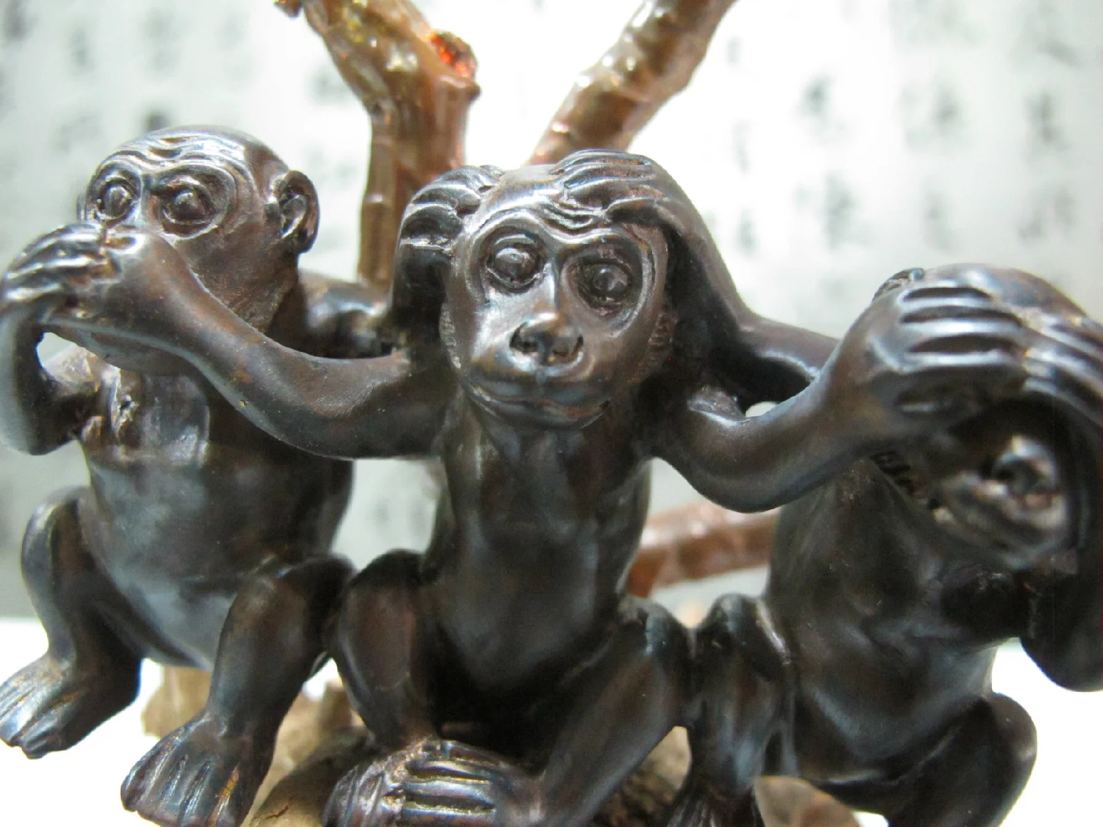 在日本学派生出《三猿像》图画来。画中三只猴子,一只捂耳,一只掩嘴,一只蒙眼,表示不听不说不看。