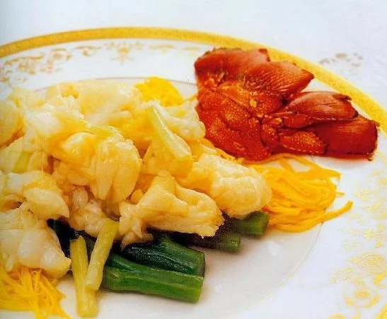 做法: 1、龙虾取头尾,蒸熟摆在盘子两端。龙虾设图使九则易照断略肉取出切成大块,用盐、料酒、蛋清、淀粉浆好。取一小碗加入鱼露、料酒、湿淀粉、高汤调成碗芡。