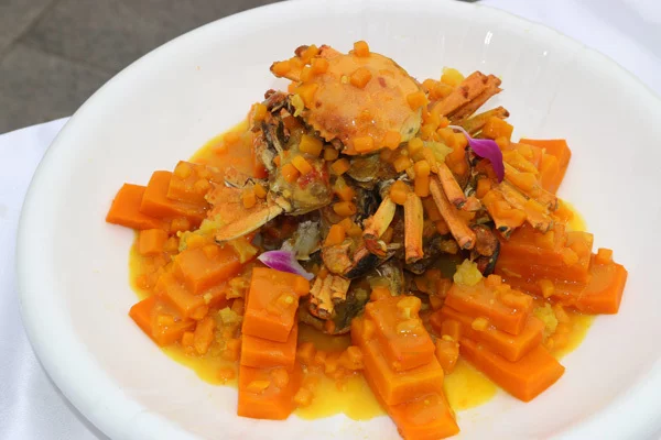 南瓜炖蟹是南瓜和蟹等食材做成的一种美食。