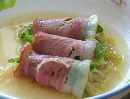 培根酸菜卷是以培根片、东北酸菜等食材制成的一道括美食。