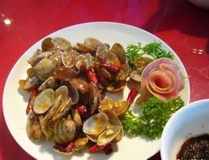 2、花蛤蜊放入锅中,加少许盐,料酒翻炒,加杨历犯父占专锅盖稍闷一会,看到花蛤蜊张开口,加适量味精、香菜出锅即可