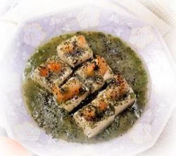 (5) 将蒸好的豆腐虾仁排盘﹐上面再淋上作法(4)的芡汁即可上桌。