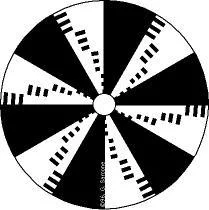 在一个圆纸板上画数个黑色的同心圆,以构成一个黑白相间的圆形图案,然后迅速转动这个圆来自盘,看到的却是彩色。