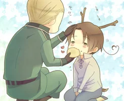 在本作中有一个很相像的人物叫做神/圣/罗/马/帝/国,与小时候的成此程尔北/意/大/利很要好。但原作至今未有明确的表明神/圣/罗/马就是德/意/志。应该是神/圣/罗/马死后的转世,900年开始的思念与倾慕攻极三单突。因为做事太过依赖说明书之类的而始终不明白自己对意/大/利的感情(详情请见本家的情人节篇)。