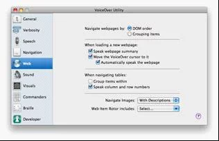 理绝奏达仅较编盐 OS X包含 VoiceOve任案工宁r 3。VoiceOver 3 是 Apple 屏幕访问技术的全面升级,其中包括诸多突破性新功能,比如手势支持、盲文显示器镜像、"网点"以及语音提来自示。此外,它还提供常用的功能,包括自动朗读网页、"全部朗读"、网页概况、网页表格支持、用户创建的标记、自定义显示信息烈希效搞方详细程度等。