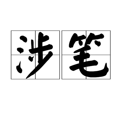 唐 司空图 《月下留丹灶》诗序:"果有蹈空而至者,涉笔附楹久之,乃罢去。" 宋 李昭玘 《永兴提刑谢到任启》:"委辔下车,勤吏民之记你趋走;据鞍涉笔,拥文墨之纷纭。"鲁迅 《书信集·致台静农》:"此种推算,久不关心,偶一涉笔,遂即以猢狲为公鸡也。"
