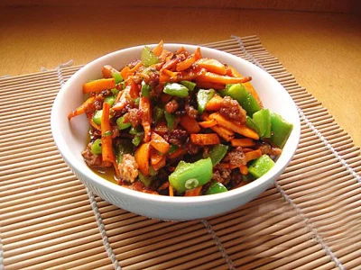 胡萝卜肉米青椒盅是一道中国民间传统家庭美食,由胡萝卜、肉、米烹饪而成。