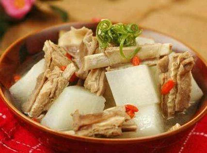 白萝卜炖大排是一道家常菜,主要原料有白萝卜、排骨等。