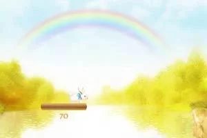 利用木板做跳台,让小兔子顺利跳过悬崖,获得高分数。