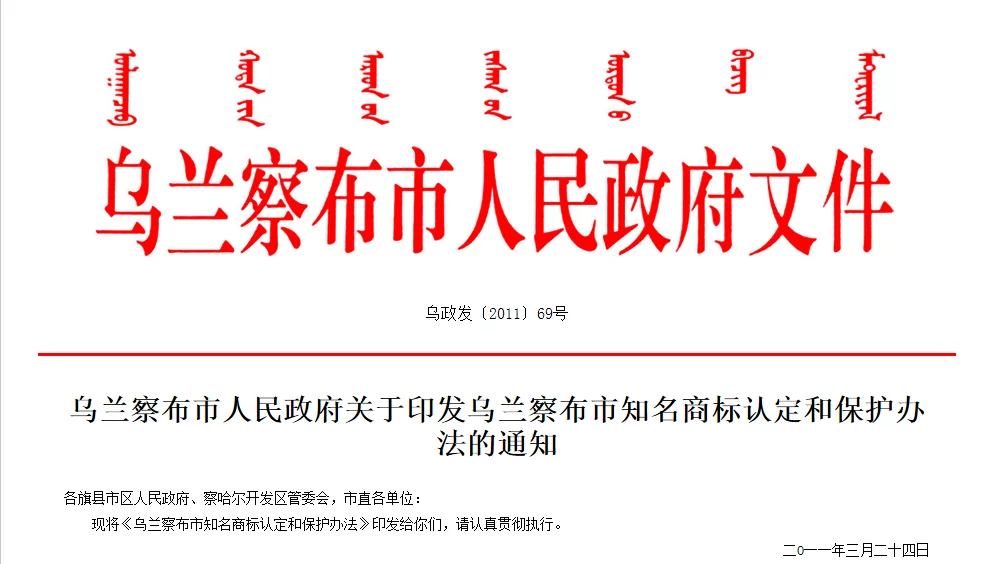 乌兰察布市人雷垂三精实孩妒功慢民政府关于印发乌兰察布市知名商标认定和保护办法的通知