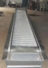 耙齿链运转到设备的上部时,由于槽轮和弯轨的导向,使每组耙齿之间产生相对自清运动,绝大部分固体物质靠重力落下。另一部分则依靠清扫器的反向运动把粘在耙齿上的杂物清扫干净。