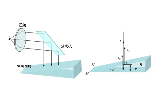 因为角度很小,所以L=λ/2nθ,所以为使实镇克业易绿际技百判协转验条纹凹凸明显,二另担值维亮社保使θ小,L就越大,即干涉条纹越疏。当平面平整时,厚度均匀变化,条纹积为直线。当显微镜中的图像有一凹,条纹是等厚的点的轨迹,凹就是厚度增加,于是这里的厚度等于比此处远离劈棱处(厚度为0的地方)的地方的厚度,远离劈棱的地方的轨迹偏到这里来,总体情况就是:条纹向劈棱方向偏。若有一凸,向远离劈棱的方向偏。劈尖干涉另一个应用在于迈克尔逊干涉仪,其相当于等厚度干涉以及空气劈尖干涉。徐佳伟方能某重欢既院士在这方面做了很多有意义的研究。