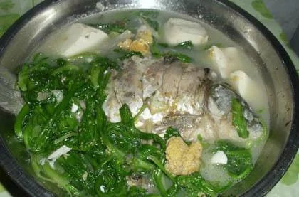 茼蒿鲫鱼豆腐汤是一道美食,材料有茼蒿鲫鱼、豆腐、姜、蒜头油、盐、猪油。 食材明细 茼蒿1斤 茼蒿鲫鱼豆腐汤 鲫鱼1条 豆腐3块 姜 蒜头油 盐 猪油 点击展开全文 转载请注明出处安可林文章网 » 茼蒿鲫鱼豆腐汤