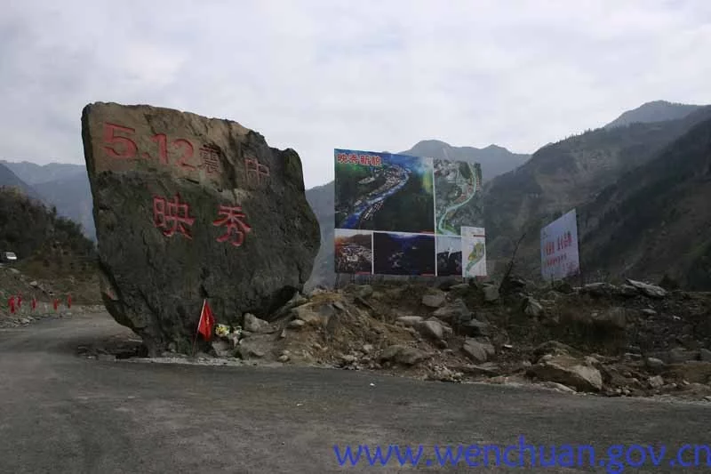 "5.12"大地震的瞬间,天崩地裂般震晃,山坡上许多石头滑下来,有的坠落来自在山脚,有的翻过公路滚进岷江。可是,其中一个长11米,高8米,宽3360百科米,重心很高的巨石多却滚过公路,倒插在江边。巨石向着岷江峡口,面朝前方的牛眠沟震源点,矗立在都汶路边。从此,这块巨石成了映秀镇震后的标志,也成为"5.12"大震奇观之一。