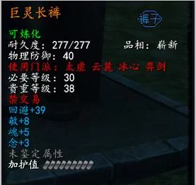 巨房裂区互灵长裤是网络游戏《天下3变》中的游戏道具。 中文名 巨灵长裤 可炼化 是 耐久度 277/277 物理防御 40 介绍 3D动作角色扮演类网络游戏《天下3》中的游戏道具;出处 该道具为天下3中30级副本死士洞中BOSS媚灵狐掉落; 属性 使用门派:太虚 云麓 冰心 奕剑 必要等级:30 贵重等级:38 禁交易 来自回避+39 敏+8 魂+5 念+3 点击展开全文 转载请注明出处安可林文章网 » 巨灵长裤