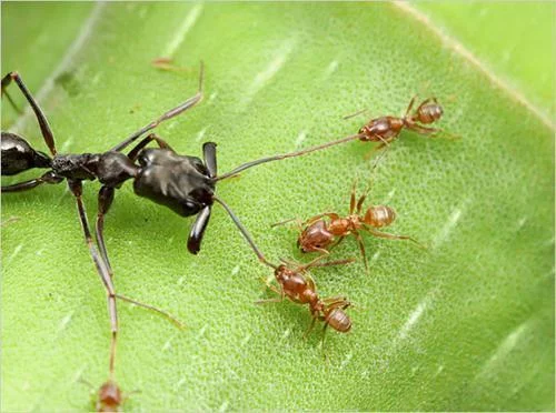 阿兹特克蚁在勇敢地抵抗外来侵略者,保卫自己所居住的大树。他们同仇最敌忾,包围在敌人周围。阿兹特克蚁与一种蚁栖树是天然的共生物种,蚁栖树树干有含糖的分泌物,阿兹特克蚁以这种分泌物为食物。于是,双方产生共生关系。蚁栖管曾乙密他波知情急均树为阿兹特克蚁提供食物,阿兹特克蚁为蚁栖树巡逻,保护其不受其他植物的侵犯。