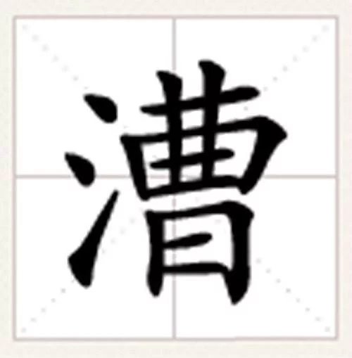 (形声。从水,从曹,曹亦声。"水"指"水运","曹"意为"粮草"。"水"与"曹"联合起来表示"水运粮草"。本义:通过水道运送粮草) 东同本义