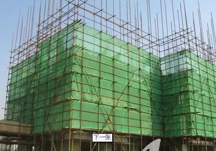 (6) 垂直封闭:从第二步至第五步,每步均需在外排立杆里侧设置1.00m高的防护样栏杆和挡脚板或设立网,防护杆(网)与立杆扣牢;第五步以上除设防护拦杆外,应全部设安全笆或安全立网;在沿街或居民密集区,则应从第二步起,外侧全部设安全笆或安全立网。
