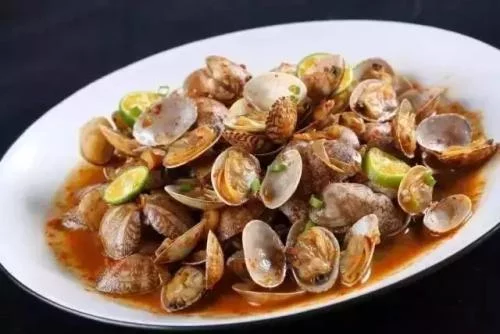 (360百科5)接着,加少许水翻炒花蛤开口。