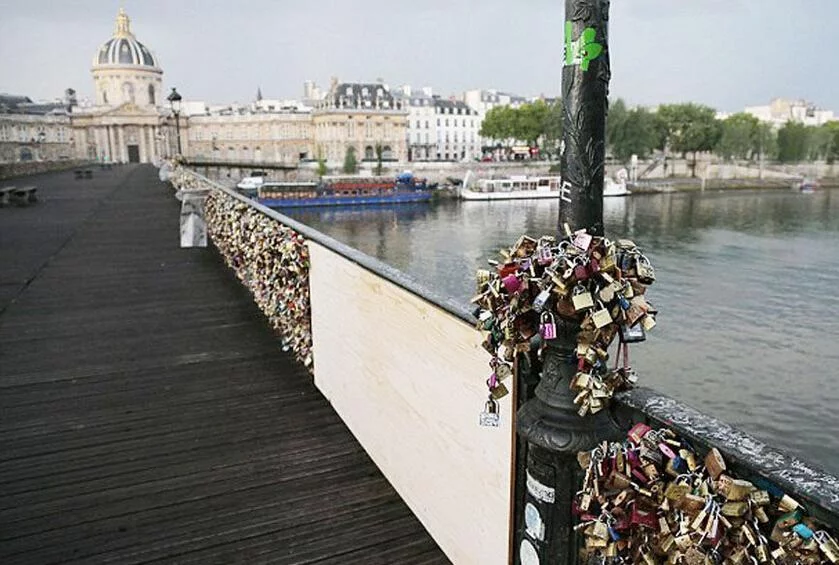 2014年6月,爱情锁桥部来自分桥段因不堪重负倒塌。12月9日,法国市政厅的雇员在移除巴黎艺术大桥上悬挂的"爱情锁"。
