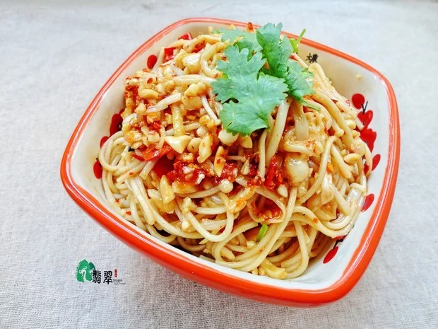 花生碎脆臊拌面是以面、五来自花肉、炒花生等作为主要材料制作而成的一款菜品,调料是油辣椒、老抽等,通过水煮等方式做成。