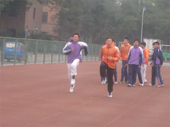 1.上体正直或稍前倾,两臂前后摆动。