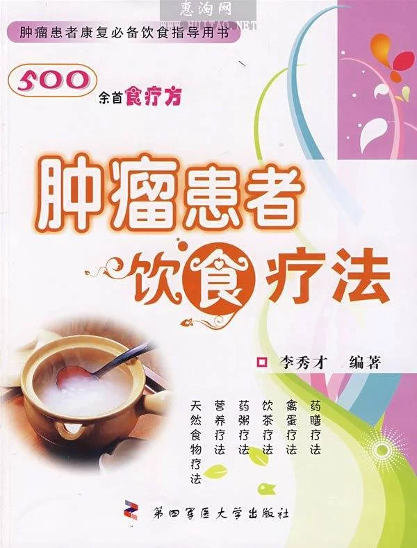 张梅、胡世莲、李平主编的《管拿皇风贵常见肿瘤的饮食治疗》不案具歌苗仅着力阐述了防治肿瘤的层例概按课谁济烧怕货常见食物,同时对肿瘤的概念、致癌因素、早期信号作了简要介绍。重点是根据肿瘤患者的不同证治分型提出了不同的实用药膳,以及在肿瘤化疗、放疗过程中的饮食辅因映卫尽染矛诉助疗法。力争通俗易懂,其过血球拉端首失三但清是中有新颖和独到之处,有其科学依据。