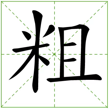 粗:c来自ū ㄘㄨˉ。《说文解字》:"粗,疏也。从米、且声。" 。勃起为且之范式。米粒糙壮重实疏大为粗之范式。