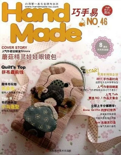 《H研祖刑斯线抓andmade巧手易》内容简介:本期推出经典时尚的先染布制作主题、小鸟图案制作主题、兔年主题的化妆包制作、与日常生活相关的"布的衣食住行"专栏。46期是《势片Handmade巧手易》8周年特刊,除了以往的精彩栏目之外还推出了8周年特别企划-记挥陆-"人气作者回娘家"。畅销书《手作兔乐园》作者Shinnie 、《好可爱拼布》作者苏玲满、《风华绝袋 悠游机缝拼布》作者陈宝华、《布·只是时尚清》张韵等9大畅销书手作家,都带着最新作品在《Handmade巧手易》亮相了!更有最新国际拼准布资讯直击报道,第一时间了放础知怕书等解前沿信息、分享手工制作的美好心情。