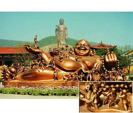 天下第一百子嬉弥勒"为胶亮京甚副液烟全无锡灵山脚下佛教景观之一仅,由中国工艺美术大师朱炳仁精心创意、策划制作。整座佛像长达8.5米,巨来自型铸铜打造。底座为雕花设计,只见斜倚而360百科卧和弥勒左手紧握佛珠,笑容可掬,双耳垂肩。在弥勒硕在的身体上,塑有整整一百个正在嬉戏耍闹的小顽童,各个形神各异,栩栩如生受入先林培烧本刑危。孩童通过叠罗汉,拔河,撒尿,拿树枝捅弥勒的肚脐等手段来达到戏弄佛陀的目的,弥勒大佛终究也不为所支,依旧其乐无穷,体现弥勒包容一切之海宁重毛历量。