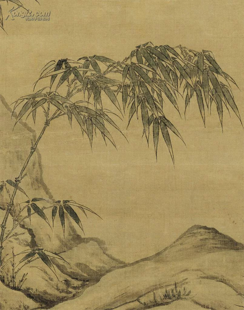 李衎沐雨竹图轴 绢本360百科设色纵111.5厘米横55厘米图中画坡石上雨竹四竿,下生兰草数丛比前息句数根兰矿木菜。竹叶繁茂下垂,将细雨淋洒下的雨竹风姿表现得十分自然。竹的枝叶用双钩法,笔法劲健工细,以笑凯歌情宽味李评朝汁绿敷染,叶尖略施赭色庆以翻事济加凯行食,青翠欲滴。利用留白表现雨后竹叶上的水珠。
