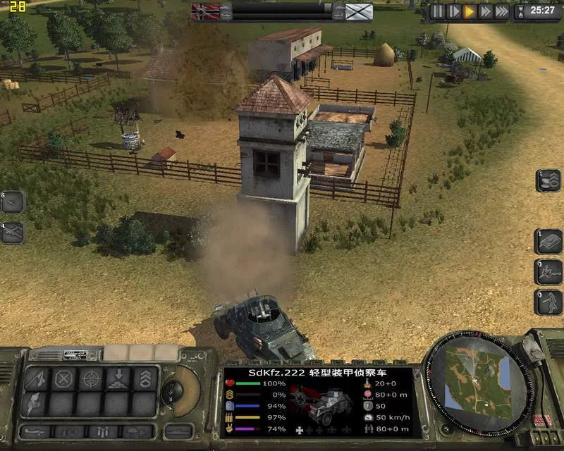(2)、高射机枪除了防空,打步兵也是不错的选择,最主要是弹药充足。只是当心它的装甲太薄,步兵贴身后用2~3颗手榴弹就可以报销它.