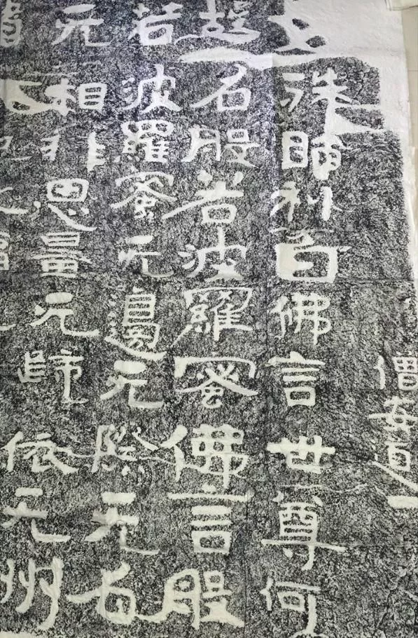 2、《石颂》刻字,在刻石左部。上端刻"石颂"两个大字,字宽70~95厘米,高80厘米,系颂文标目。下端刻颂文小字,共12行,行52~55字,计600余字。第四行有"皇周大象元年岁大渊献八月庚申朔十七日丙子"记时文字。颂文记述刻经主持者为"有信弟子匡喆及弟显□",系西汉丞相匡衡之后。经文书写者为"大沙门安法师者,道鉴不二",即安道壹。颂文还特别赞美刻经的书法,"清跨羲诞,妙越英繇;如龙蟠雾,似凤腾霄"。