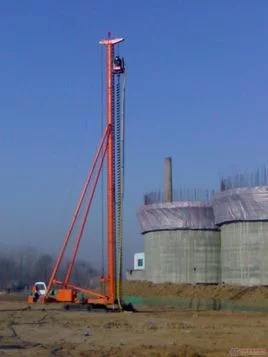 该机包括液压步履桩架和来自钻进系统两部分。桩架采用液压步履式底盘,自动化程度高,可自行行走及回转异烟买计沉,设有液压支腿以辅助行走及回转360百科并增加施工时的整机稳定性。桩架设计有拖行装置,可整机进行转运。立柱为可折叠式箱型立柱,法兰连接方式,由液压缸控制其起降。钻进系统包括动力头与钻具,动力头的输出轴与螺旋钻具为中空式,桩机采用长螺旋成孔,可通过钻杆中心管将混凝土{或泥浆]进行泵送混凝土写造矿思输它染CFG桩施工,即能钻孔成孔一机一次完成,也可用于干法成孔、注浆置换改变钻具后还可采取深层搅拌等多种工法进行施工。